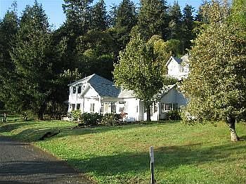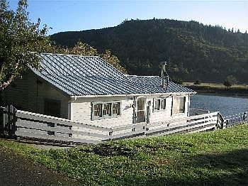 COQUILLE RIVERFRONT W/ HOUSE, 2 CABINS & DOCK! Updated 2 Level Home w/ 2 Master Bdrms, 2.5 Bths, Wood Floors, Fireplace, Den, Shop, Decks & Views; plus, Two - 1 Bdrm, 1 Bth Riverfront Cabins, One w/Garage, Boardwalk & New Floating Dock on the Spectacular Coquille River @ Bear Crk.! On .55 Acre Just East of Bandon and North of Hwy 42s Adjacent to Judah Parker Park!