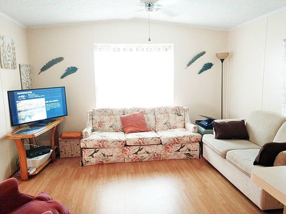Looking for a great little get away in a fun, active 55+ community. This Homes of Merit single wide 14 x 35 is small but has a great layout with an open concept, a great setting close to everything with a Florida Room and updated flooring, roof and AC. This home is located in the popular Hidden Golf Club and is part of the combined CRF communities, Hidden Golf and Swiss Golf & Tennis where you can enjoy an active community on beautiful 1,000 acre Lake Henry with fishing pier and boat dock. Don't let the size of this neat little home deceive you. It is a great place at the end of the street, on the golf course, no homes behind you or on one side. It sits right by the flag at hole number 5. It is close to the club house, pool, hot tub, shuffle board and more. This home has a front Florida with vinyl windows facing the street and the golf course. This 1 bedroom, 1 bath home has all you need to really chill out and enjoy life in a fun community. You will enjoy the open concept of the living room, kitchen and dining area. The other bonuses are the home has laminate throughout, Central Air in 2010, Lifetime Roofover and it is ready to move in. The Florida room also has heat and air. So all you have to do is bring your clothes, toothbrush and begin enjoying a wonderful community, with wonderful people in a great location with lots of things to do. Priced at only $9,000, you can't go wrong. Call today, I have sold all but two single wides in the past two weeks. Don't miss out. Hidden Golf and Swiss Golf & Tennis are very active communities. There are 2 clubhouses, 2 pools, an onsite restaurant, exercise room, card room, billiard room, library, pro shop for the 18 hole executive golf course, shuffleboard, pickle ball, bocce ball and the list goes on. There is a strong entertainment committee which provides local monthly shows, dances, dinners, cards, white elephant sales, golf cart parades and bingo. You can be as active as you like or just chill out by the pool overlooking a beautiful lake. Winter Haven, FL, is centrally located between both the Gulf and the East Coast beaches. The Orlando Airport is only 45 minutes away and so are many sports events, such as the Lakeland training camp. Disney World and Universal Studios are close enough to enjoy any time you feel like going. There is a never ending array of outlet malls for shopping, dining and relaxing! So, whatever you like to do for entertainment, Central Florida is the place to live. Property address is 561A, Winter Haven, FL 33881. Monthly lot rent 501. $9,000.00 Golf Cart Neg. ($600) Contact Janeesse LeBlanc with Sun Resales