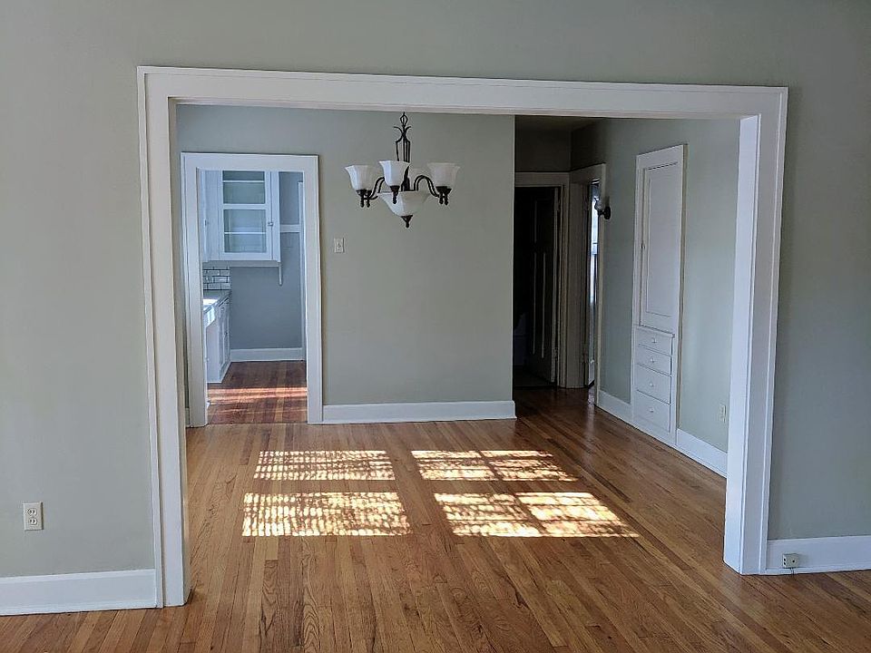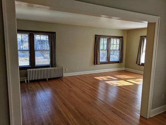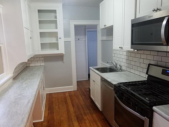 Large 2 bedroom, 1 bath 1920's 1st floor duplex; 1,284 square feet of living area with refinished hardwood floor thru out, tile floor in bathroom, tan walls; updated white kitchen with stainless steel appliances, oak woodwork and built in; 93% efficient heat, portable ac unit; good closet space, ceiling fans in bedrooms, private storage and washer/dryer hookups in walkout basement; 1 car carport spot; patio area, lots of character, Cats ok up to two, no smoking. Lawn and snow taken care of by owner lawn and snow taken care of, gas, electric and water is tenants responsibility