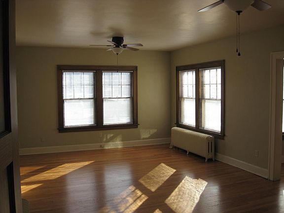 Large 2 bedroom, 1 bath 1920's 2nd floor duplex in desirable Ingersoll area; 1,284 square feet of living area with refinished hardwood floor thru out, tile floor in bathroom, tan walls; remodeled white kitchen with stainless steel appliances, oak woodwork and built in; 93% efficient heat, portable ac unit; good closet space, ceiling fans in bedrooms and living room, private storage and washer/dryer hook ups in walkout basement; 1 car carport; patio area, lots of character, Cats ok up to two, no smoking. Lawn and snow taken care of by owner, tenant responsible for water, gas, electric renter is responsible for water, gas, electric. One year lease