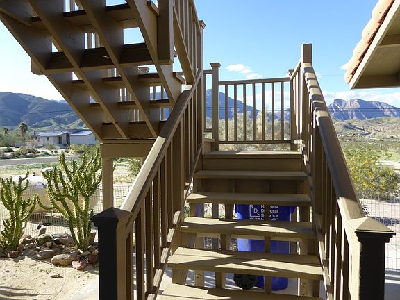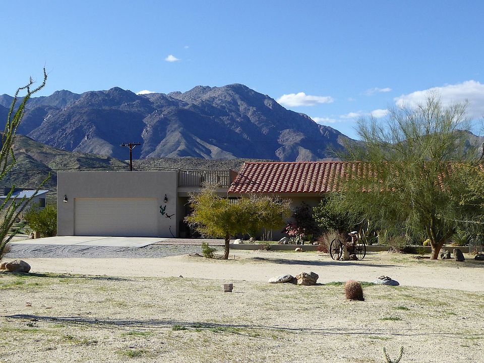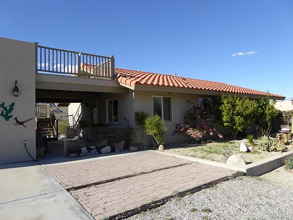 Very charming 2004-built home, perfect for the desert & in a great location with panoramic views, .86 acre, star gazing deck, fenced breezeway and two-car garage. Situated in a neighborhood well off the main roads, with larger lots and dark night skies. Tile roof, deck outside the living area, cactus garden, and irrigated desert landscaping, including Ocotillo, as well as Palm, Lemon, Orange and Grapefruit Trees . Quiet drive-through corner lot with plenty of guest parking.
