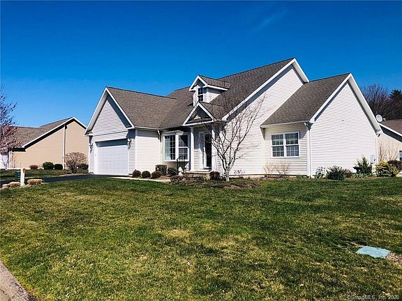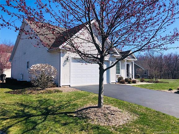 Modern living in this detached condo ranch home! Bridgefield Commons is conveniently located in the quiet area of east Meriden along the Middlefield line, level, cul-de-sac is a wonderful 55+ community, pride of ownership inside & outside. Enter into this gracious home, columned entry, 9ft ceilings, crown molding, hardwood floors, open floor plan. The dining room has a bay window that flows nicely into an expansive kitchen, maple cabinets, breakfast bar, under-mount lighting, pantry closet. Great room with cathedral ceilings, warms you up with gas fireplace, transom windows, plus door to the deck for entertaining conveniently or quiet moments. There is large laundry room with great storage closet. The master bedroom is quietly set back with a walk-in closet, full bath with private commode & linen closet. 2 additional bedrooms are spacious with 2nd full bath. This 2007 built home offers energy star living, built-in handicap accessible features, full basement, 2 car garage, natural gas, central air. Enjoy maintenance-free living, low fees, easy off the highways, halfway to Hartford, New Haven makes for a great opportunity!