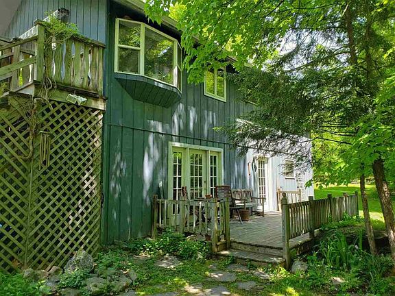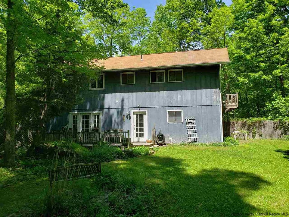 Looking for a home that feels like a get away? An Oasis? You just found it! Enter this property through the circular driveway that keeps it tucked nicely off the road. Head up the exterior staircase to the expansive deck complete with canopy and enter the top floor through the double sliders, perfect for entertaining guests both indoors and out. Through those doors you'll find yourself in the huge living room with vaulted ceilings and a gas stove for extra warmth. Cross the thresh hold to the great room and enjoy the kitchen, dining room and sitting area which incorporates the fireplace. Add more vaulted ceilings and double French doors that lead to yet another deck to finish off the custom living space that overlooks the 8+acres and exudes natural light. Down the hall you'll find 2 of the 4 bedrooms, the master having a private deck with stairs that lead to the yard. Additionally, you'll find a full bath and laundry room. Onto the first floor to the family room w/woodstove the other 2 bedrooms, bathroom and garage access. The private 1st floor entrance with the sweet stone patio and fenced in area could easily be used for an inlaw suite, an office for a home business or an airbnb. Once outside, the enchantment continues with lovely landscaping, a 15x20 pole barn with paddock, and riding/hiking trails. All this 2+/- hrs from NYC. Near skiing, golf, antiquing, fine restaurants, hiking, mt. biking, HITS Showground, Hudson, Catskill, Woodstock, Saugerties and all that the Catskill Mts. and hudson Valley have to offer.