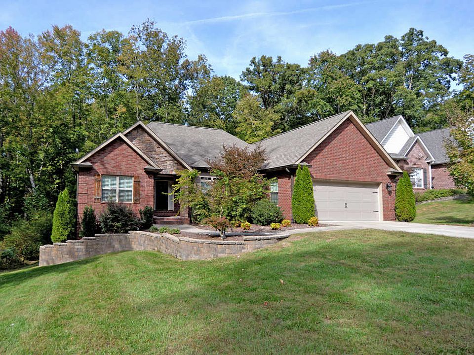 ONE-LEVEL LIVING IN LENOIR CITY! Located on a beautiful wooded lot, this basement ranch boasts a desirable open floor plan with a hint of southern charm. Features include tasteful paint colors throughout, plantation shutters, hand-scraped hardwood flooring, 9-ft coffered ceilings & transom windows in the main living area, a spacious master suite with a custom trey ceiling & luxurious master bath, a duel fuel furnace, a well-designed eat-in kitchen with ample cabinet space & granite counter tops, and a relaxing back deck that overlooks the quiet wooded backyard. The unfinished basement provides tons of extra storage/workshop space and could easily be finished to add over 1900 SF of additional living space (roughed-in and plumbed). Additional storage space in the attic over the garage.