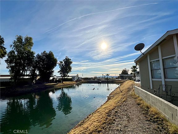 VIEWS, VIEWS, VIEWS!!! Enjoy the water views out just about every window in this very spacious 1632 square foot home! You could call this the ideal vacation home, but once you're here you won't want to leave! Making this the perfect home for summertime visits, winter visits or all year 'round river living! This 2 bedroom, 2 bathroom home screams pride of ownership! Enjoy your morning coffee or evening cocktail while soaking in the views of the private lagoon, Jack Smith Park Marina and the stunning Colorado River! The open floor plan provides the perfect entertaining space for all your friends and family. The HUGE Primary Bedroom boasts extra space for an additional sleeping quarters, gorgeous water views and a walk in closest. Primary Bathroom is also HUGE with a walk in shower, soaking tub, dual sinks, plenty of counter space and additional storage. The covered carport provides plenty of shaded parking for your golf cart, boat and or off-roading toys. Extra concrete out front gives additional parking space. Shed for extra storage. This home is situated in The Palms at Verde Shores 55+ park. The land lease includes 2 private launch ramps, private beach, boat docks, multiple grassy areas and horseshoe pit. You will want to come see this one before it's gone!!!