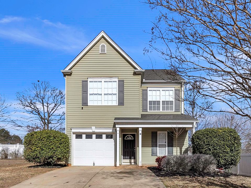 Explore this charming move in ready residence situated on a cul-de-sac within the highly sought-after Greene Creek community. Revel in the freshness of the newly installed Vinyl plank flooring throughout, new kitchen appliances and all new interior paint, giving the home a rejuvenated appearance. Upon entering, you'll be greeted by an open floorplan seamlessly connecting the kitchen to a generously sized dining and living room area. The living room extends to a screened-in back porch, offering a tranquil space to appreciate the private woods surrounding the lot. The expansive backyard opens up to a neighborhood green space, providing both privacy and an ideal area for children to play. Venture upstairs to discover the spacious Master bedroom featuring an en-suite bathroom and a roomy walk-in closet. Additionally, two more bedrooms and a full bathroom are conveniently located on the upper level, along with a laundry room for added practicality. Community amenities include a playground, Clubhouse and a swimming pool, enhancing the overall lifestyle. This residence not only offers a comfortable and modern living space but also boasts a prime location, with easy access to local restaurants and shopping, as well as being less than a mile from the interstate. Don't miss the opportunity to make this delightful home in Greene Creek your own