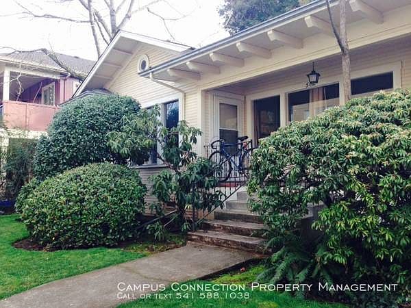 SCHEDULE A SHOWING ONLINE AT: showmojo.com/lh/2b342f40f8 Available for a July 14th move-in, this spacious 4 bedroom 2 bath house is in a great West Campus location on E. 12th near Patterson! Just a couple blocks walk to U of O campus, shops, restaurants, bars, and more. Home features modern updates with vintage charm. Large upstairs living room with great natural light. Spacious basement family room with bonus kitchenette, with whole level newly remodeled with faux wood flooring. Two exterior entrances for great separation of space. Dishwasher, washer, and dryer provided. Off-street parking for 3-4 vehicles with alley access. Yard care provided. Tenants pay all utilities and garbage. Sorry, no pets. $2,900 refundable security deposit. $50 application screening fee per adult. Lease through June 30, 2020. Tenants must agree, should they elect to renew the lease beyond this date, they will need to vacate for 7 days during summer 2020 (and any subsequent summers) so that the homeowners may stay at the house for a one week period. Off Street Parking Yard Care Provided