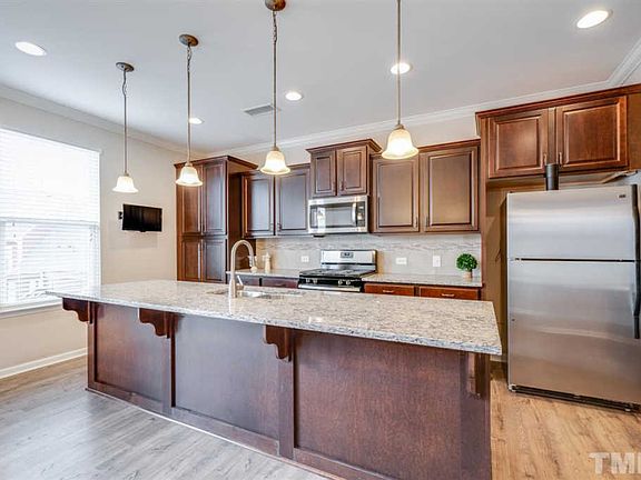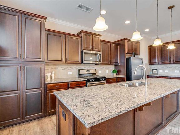 LESS than new construction & MORE square footage! Like new, LIGHTLY LIVED IN 3-story townhome & one of the largest plans built by True Homes in popular Villages of Apex. This TURNKEY HOME includes all appliances, washer & dryer! BEAUTIFUL KITCHEN w/ a huge island, hardwood flrs, granite, stainless appliances & pantry. SPACIOUS FAMILY ROOM w/ fireplace. Upper level w/ two bedrooms including a MUST SEE MASTER SUITE w/ sitting rm, large bath & walk-in closet. Other: Lwr level bed/bath, deck, 2 car garage.