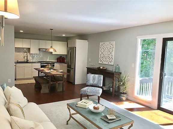 Excellent location and totally remodeled! This unit is convenient to town as well as the village with all of its amenities including golf, tennis, pools, fitness center, etc. With no units behind it, the view from the deck is unobstructed to the beautiful trees and in the winter you can even see the river! Inside you will find a gorgeous kitchen with new cabinets, stainless steel appliances and granite counters; the large family room boasts tons of natural light and a custom fireplace as the focal point. Engineered hardwood floors flow throughout the living space and into the bedrooms, both with two generous sized closets. With tastefully remodeled bathrooms to finish it off this condo is move in ready! (Electrical updated, newer water heater and AC unit only a year old)