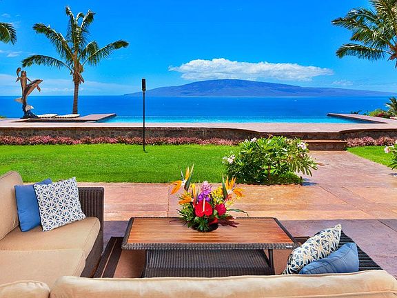 Enjoy breathtaking, 180-degree unobstructed views of the Pacific Ocean and the island of Lanai while staying at this luxurious villa located just minutes from Lahaina town. This stunning Maui home can host up to ten guests and offers 3,700 square feet of indoor and 1,500 square feet of covered outdoor tropical living space. Plus, the home is eco-friendly, with four Tesla power units in operation to keep the green energy flowing! This private, gated home encourages guests to open the sliding pocket doors to take full advantage of the indoor-outdoor living experience. The main house offers four bedrooms, four baths, a fully equipped gourmet kitchen with high end appliances, a spacious living room, a media room and a family gaming area with comfortable furnishings throughout. The cabana offers a bonus bedroom with a queen bed and a fully outdoor en-suite bath that is perfectly suited for the teen or young adult in your party. The lanai offers tranquil lounging areas and includes a soothing water feature to keep you feeling fully relaxed throughout your stay. The master bedroom features a king size bed with a private bath including both an indoor and outdoor shower, kitchenette, large closet and has direct access to the lanai. The second master suite includes a king size bed, kitchenette, desk, outdoor shower and has direct access to the lanai. The third bedroom has a queen bed with an en-suite bath. The fourth bedroom has a queen bed and direct lanai access. The home is equipped with central air conditioning and has ceiling fans in every room for your comfort. The Cabana is the perfect gathering place for socializing with family and friends. The outdoor bar area includes a gas grill, full refrigerator, sink and dishwasher. It's the perfect place to enjoy a homemade cocktail and refreshments by the pool while taking in the amazing views of the outer islands and the gorgeous Maui sunsets. Take a refreshing dip in the spectacular infinity pool and enjoy evening stargazing from the hot tub. Realize your Maui dream vacation at Hale Lani Kai.