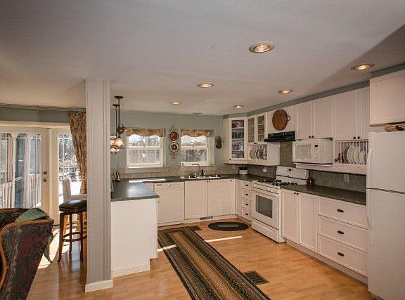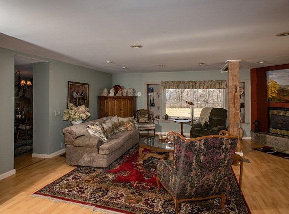 Just minutes from the conveniences of Potsdam, this country home on 3.5 acres is move-in ready. The custom-built kitchen with ample cabinets opens to a large open living room and gas fireplace. Doors lead to a deck and screen porch for enjoying summer days, & just outside the house is space for gardening. The dining room windows overlook the large yard. The master suite includes a library reading area, plus a study and full bath all on the main level. Upstairs are two more bedrooms with original black walnut & maple floors, full bath & additional space for a study or play room. The heated garage is deep & large enough for several cars, & there is a shed for gardening equipment.