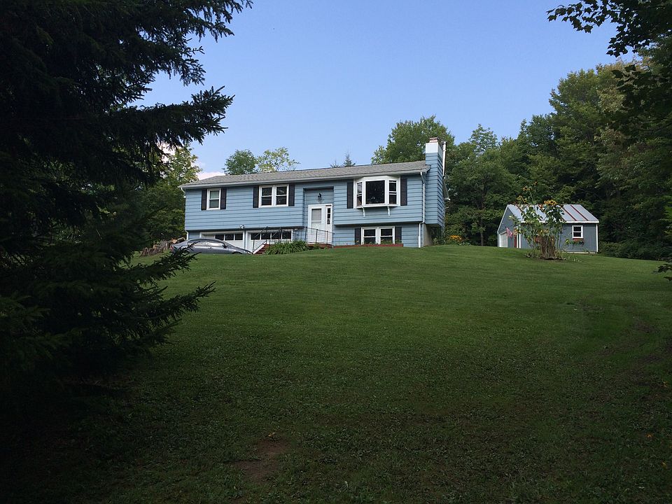 The Blue Dream House.............Beautifully updated, 3 Bedroom, 2 Full Bath Home with an attached 2 Car Garage on 4.6 Lovely acres of open and wooded land with a trail to a small private meadow. Tucked back off a quiet town road, and surrounded with flower gardens & mature trees, the home features hardwood floors, new lighting, freshly painted all rooms, new carpet, new bathroom flooring (REAL Linoleum!) new vanity's, new drainage, a bonus Family Room (Guest Rm / 4th BR) with its own Full Bath. Minutes to the The Mill Pond, The Breakfast Club, Golfing & 800 Ac of State Forest. High Speed Internet available. The Living Room features a Beautiful Wood burning Fireplace, a large sunny window & is open to the Dining Room. The fresh Family Room has a set up & chimney for a Pellet or Wood Stove & walk out to the Attached 2 Car Garage w/ Workshop OR a Private Personal Insulated Electrified Office, seperate from the house. Lots of storage, including in the Detached Garage with an insulated Hobby Shop & Electric. 10 min to I88, 10 min to State Rt 10 and Stamford.
