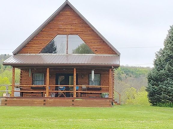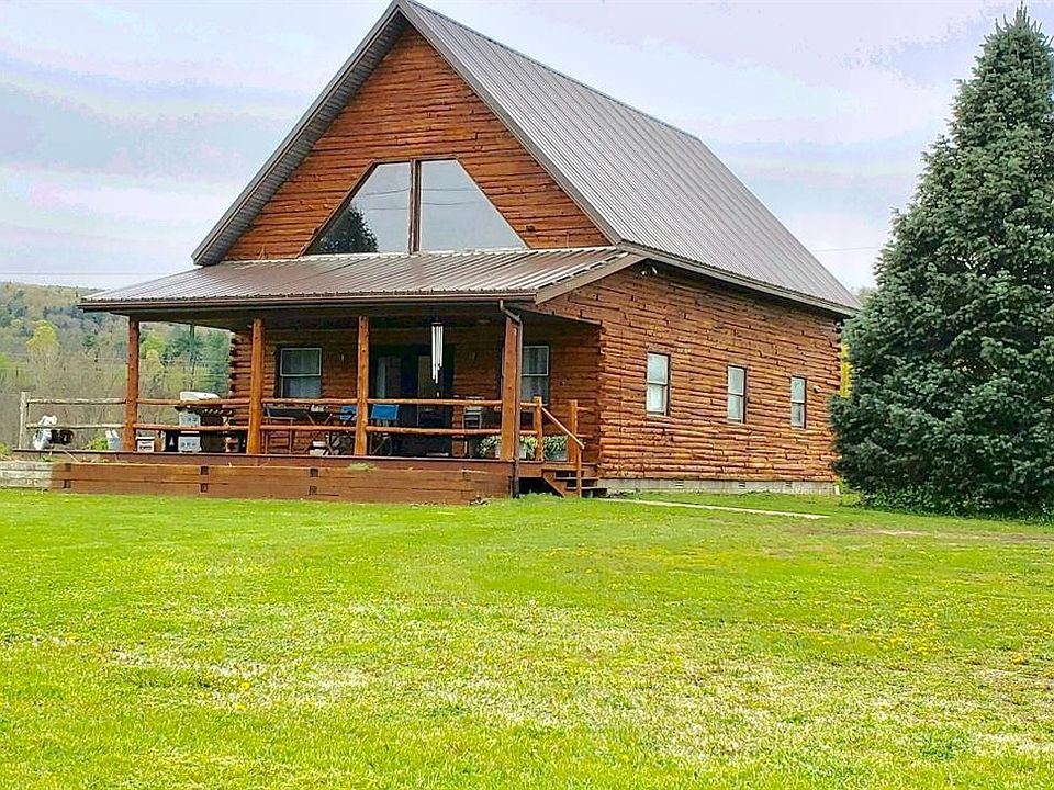 Lovely log Cabin home on 2.75 acres! New custom kitchen with tile backsplash, samsung appliance package and soft close cabinets! State of the art water filtration system complete with green sand filter, chlorinator, UV light, a charcoal filter (to remove chlorine) and a revers osmosis directly to the kitchen sink and refrigerator for superb drinking water! beautiful sunsets off the upstairs balcony accessed from the loft bedroom. This home was converted from a shop and w/ great access from Rt 96 could easily be converted back.
