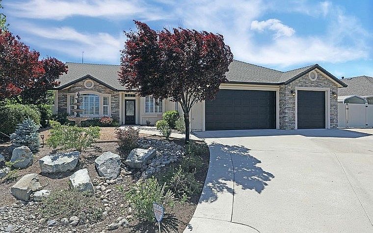 Beautiful newer home in a convenient location. Panoramic mountain views. Open floor plan. 4 bedrooms with one being set up as an office. Vaulted ceilings, crown molding, glazed maple cabinetry and plantation blinds are just some of the home's great features. Large RV parking area with concrete pads. Covered patio with low maintenance landscaping in the front and back. Storage shed. Must see!!