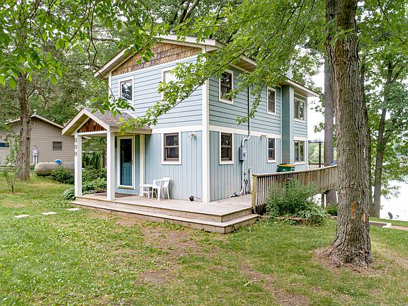 This 3 bed, 2 bath 4 season home has been rebuilt & is move in ready. It sits on the west side of Wind Lake between the chain of Round Lake & Big Lake. The lakes are spring fed which allows for great fishing both summer & winter. There is a large patio & deck that offer amazing views. A great year round home or just a get away home 45 min to the Twin Cities. The property across the road comes with the sale and offers a great spot to put up a garage or bunkhouse or both!