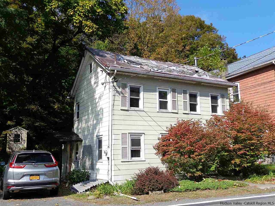Don't judge a book by its cover! This is a home that needs some fixing up and the potential is definitely here. Immediately you'll find the setting to be serene with a wooded backdrop, gardens and plantings all to be enjoyed whether outside or in! As you enter the home through the side door, you'll find an all season room with a wall of windows looking out to the rear yard and its natural landscape. Ideal for a number of uses....reading room, small studio/den/study, sun room, it's yours to choose. The kitchen has been well designed and constructed with quality maple KraftMaid cabinets, counter tops, bamboo flooring and good storage. The open living room area is spacious with a small dining area near the kitchen and provides an entry to the studio/sunroom. On the second floor you'll find an oversized foyer with lovely views of the natural landscape and the perfect spot for a small den or office. Off the foyer is the bedroom, both light and bright with hardwood flooring. The full bath with laundry can be found on the second level and includes Bosch Axxis appliances. There was a plumbing leak behind the shower wall extending to the staircase and ceiling on the first floor that will need repair and mold remediation. The basement is approx. 4' high, nice and dry, with good space for storage. Along with being solidly built and well insulated, there are newer vinyl clad windows as well. The roof is unsafe and in very poor shape. It will need to be completely replaced including rafters, sheathing and shingles. It is not safe for anyone to go on or to walk on. There is also a small bluestone patio, storage shed and a covered deck to the side of the rear yard. An easy walk to Main St. where you'll find a number of eateries, the Big Cheese, Rosendale Theater, shops, Farmer's Market, rail trail and so much more. Just minutes to the bus station on Rte. 32, with New Paltz and I-87 a short drive for easy commute!
