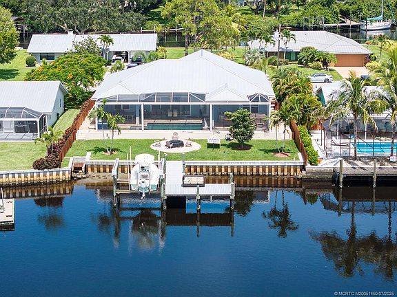Nestled at the end of a quiet street, on the water with an amazing & serene view, in the heart of Palm City, you will find this exceptional 2020 build home. This stunning 3-bedroom, 2.5-bath waterfront home offers 2,136 sq ft of open living space. Enjoy canal frontage with a private dock, boat lift and direct ocean access with no fixed bridges to Bessey Creek. Interior highlights include a split floorplan, media room, an office, tray ceilings in the living room, crown molding, Bosch stainless appliances, wood tile floors throughout and impact windows & doors. The open-concept layout flows to an oversized screened patio with an outdoor kitchen, saltwater pool and hot tub ideal for entertaining. Additional features are a whole-house generator, a gas fire pit and a fully fenced in yard. Located near shopping, dining, golf courses and major highways, this home offers the ultimate in Florida waterfront living.