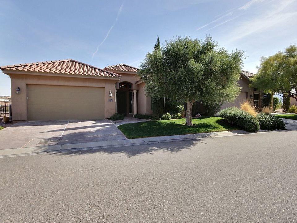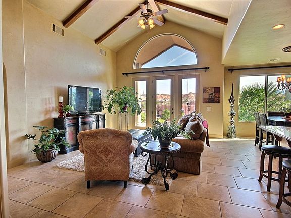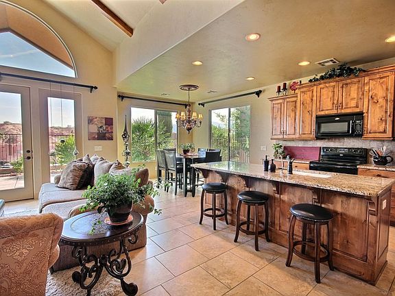 Stunning home in Mesquite, Nevada on a private cul-de-sac, perfectly situated between two of Mesquite's beautiful golf courses. Located on the side of a hill, this home has vast beautiful views which are easily enjoyed from the open concept living area and kitchen. Gigantic windows line the back of the house infusing the home with natural light. This custom home has a master suite with doors that open onto the private patio. A second bedroom and bath are located on the opposite side of the home., providing comfort and privacy. The spacious office is nestled in the center of the home, can be easily used as a third sleeping area if needed. Home has stunning granite counter tops throughout the kitchen and the bathrooms. Stunning vaulted ceilings in the living room have wood beams in the ceilings as accents. Mesquite is home to eight golf courses.. Mesquite is a small community with a quaint charm all of its own. Within a short hour drive you can be in Las Vegas where you cane enjoy the conveniences of big city life, an international airport, gambling and entertainment like nowhere else on earth. The HOA for this property is low, but the benefits are high.