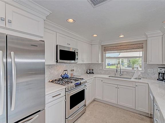 Coined the "Captain's Quarters" at Spanish Main Yacht Club on Longboat Key, now offered turnkey furnished. Completely renovated with professional designer finishes. Steps to the deeded beach access to the azure blue waters of the Gulf of Mexico. The community features an active clubhouse where you can enjoy a social atmosphere for events year round, the onsite staff and management of the condominiums makes for a tight ship. The marina features boat slips, day docking, kayak storage, and has frequent visits of dolphins and manatees. This villa features private laundry and storage rooms with a large back patio overlooking a treed estuary. 55 + Plus Community, call for detail for owners or occupants under 55 years old.