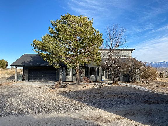 Beautiful unique three bedroom, two bathroom home sitting on 1.11 acres with fencing, trees, grass and bushes. The windows in the living room give great views of the Ruby Mountains. and tons of natural light. Pellet stove for those chilly nights. Beautiful new hardwood flooring in living and dining. Both bathrooms have been updated. If you're looking for privacy with awe inspiring views of the mountains look no further. Come see this quaint home it's sure to not last long. Pool in backyard and refrigerator in garage stays. Two storage sheds in the backyard.