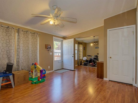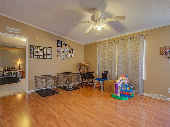 Very spacious 3 bedroom 2 full bath home sitting on a large lot that is fenced in on all sides. This property offers 2 detached sheds in the backyard, a front deck leading to the front door, and a large side deck that would be perfect to just relax or to entertain guests. As you enter through the front door, you immediately take notice to extra large rooms, vaulted ceilings and laminate flooring throughout the living and formal dining room. The Family Room has vaulted ceilings, a ceiling fan, fireplace, and opens right up to the kitchen. The ceilings are no different in the kitchen and it offers vinyl flooring that stretches from the kitchen to the far end of the breakfast nook. Also included is a pantry, large island with a breakfast bar, and all Appliances will convey (Refrigerator, Microwave, Range/Stove, Dishwasher, etc.). Right off the breakfast nook is the laundry room and access to the outside/side deck. On the opposite side of the house is the Master Bedroom that offers a large walk in closet and offers 2 Master Bathrooms (One on each side of the room)! Each offer its own sink and toilet, but one has the stand up shower while the other has a garden tub. The other two rooms also have vaulted ceilings and the second bathroom have a shower/tub combo. Just all around great house, very spacious, and offers some unique characteristics that you won't find anywhere else. Great fenced in lot, two exterior decks, open floorplan, huge Master Bedroom and two Master Bathrooms! Come take a look at this home before its too late!