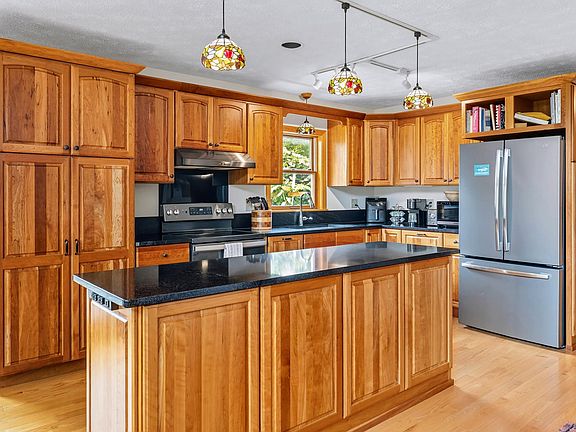 Vienna - This beautifully updated home sits on 37 private acres and offers over 2,000 sq. ft. of living space. The spacious primary suite features a loft, walk-in closets, and a private bath with stall shower. Oak floors flow throughout the main living area, which includes a stunning kitchen with custom cherry cabinets, granite countertops, stainless appliances, and Tiffany pendant lighting. Modern upgrades include multiple new heat pumps (2024), high-speed fiber internet, and a main-level office. A full heated basement workshop, barn for animals or storage, and a gazebo add even more versatility. Just 20 miles to Augusta and 10 miles to Farmington, with lakes, ponds, and trails nearby-this property is the perfect blend of comfort, convenience, and outdoor living.
