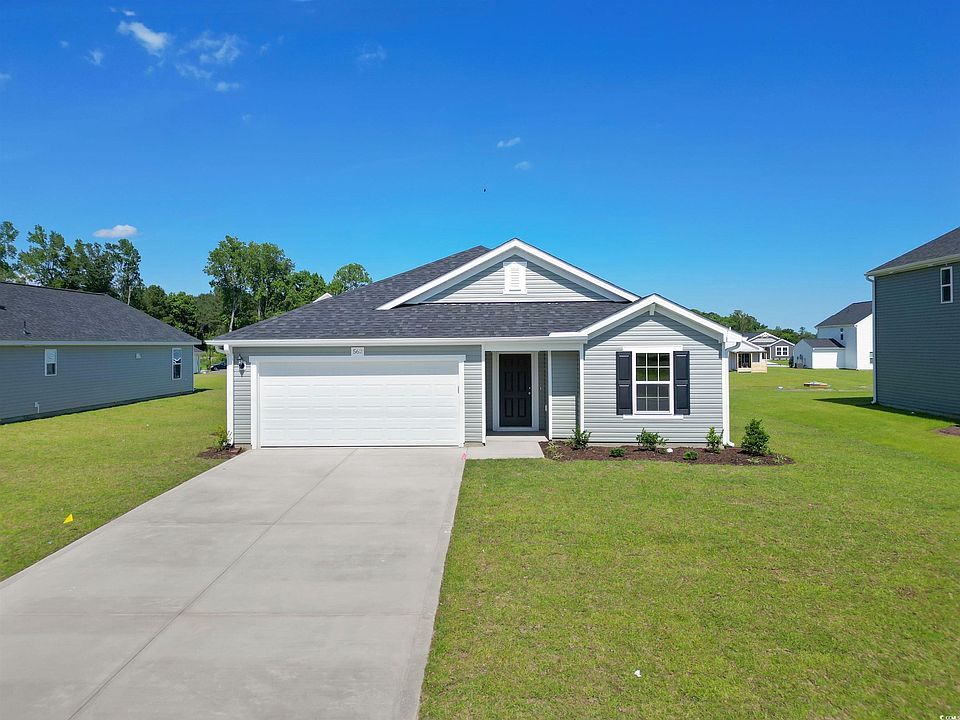 Discover the Venture Plan built by Dream Finders Homes! Boasting an array of upgraded interior finishes, this home features an updated palette including granite kitchen countertops, quartz countertops in all bathrooms, stainless appliances and luxury vinyl plank flooring throughout the main living area. The Venture is a single level home plan with three-bedrooms, two-bathroom and is customizable up to 4 Bedrooms and 3 full baths. Beyond the open entryway the home flows into an open concept living, casual dining area and kitchen, with large breakfast island, pantry, and shaker-style cabinets. This spacious home design is perfect for entertaining and enjoying friends and family. The owner’s bedroom sits just off the living area and has a large walk-in closet and large bath. There are two secondary bedrooms and an office space for the remote professional or use this space as a den for game night with friends and neighbors. Relax in the evenings or grill outside on your back patio that overlooks a serene backyard. Rivertown Landing community offers an exceptional opportunity to become a homeowner at an affordable price point with minimal HOA fees. Explore the neighborhood on your bike, take a leisurely stroll, enjoy a run, or even cruise around in your golf cart, enjoying the new lifestyle that awaits you. It's a community you'll want to call home. Nestled in the picturesque Conway, South Carolina, this initial phase of development presents numerous home sites ready for your ownership today. Just minutes away, historic downtown Conway awaits, offering a delightful array of shops, restaurants, and activities. Downtown Conway not only offers a diverse selection of shops and restaurants but also boasts the scenic River Walk. This path allows you to stroll alongside the serene Waccamaw River, where you can immerse yourself in the beauty of South Carolina's awe-inspiring skies and enjoy the sight of nature that surrounds you. Make it a priority to visit our latest phase in Rivertown Landing today and discover the home you've been dreaming of.