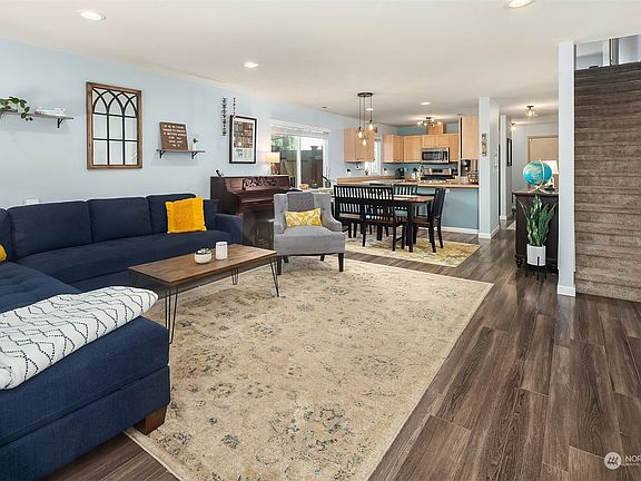 Fantastic location! This Silver Firs 3 bed, 2.5 bath End-unit townhome offers stress free living in basically Mill Creek. Inviting entry way leads to open yet cozy floor plan. Large living room w/sliding door to fenced patio for maintenance free outdoor entertainment. Primary w/full bath en-suite & W/I closet Laundry on main. Large 1-car garage w/driveway & off-street parking. Low dues. Close amenities: restaurants, schools, shopping, Willis Tucker Park, YMCA, Silver Lake, Downtown Snohomish, Mill creek Town Center, Hwy 9, I-5 & I-405 access. Perfect home for first time and/or last time home buyers. Welcome Home!