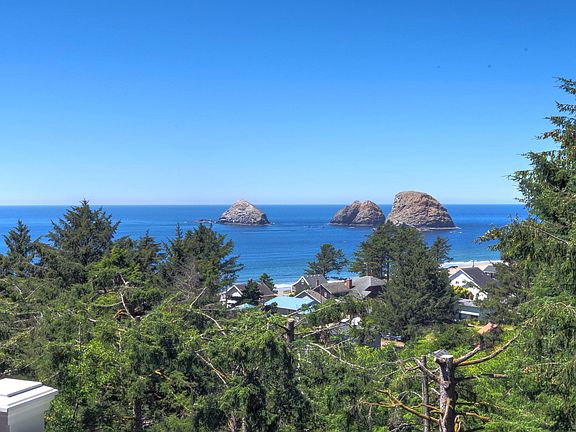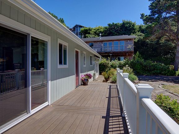 Stunning remodeled Three Arch Rock & ocean view home walking distance to beach access & the Village of Oceanside! The ideal beach home w/a light filled open floor plan, gorgeous kitchen w/granite slab counters & Jenn-air downdraft range. Vaulted tongue & groove open beam ceiling, wall of ocean view windows, wood burning fireplace & brand new Timber Tech wrap around deck. Newer (3 years old) doors inside & out, vinyl windows & gutters, high wind rated architectural roof with stainless nails & flashing --everything you need to weather winter storms! 2 bdrms & 2 full bthrms on the main level (including master ste). 1 bdrm & family rm on lower level w/an outside entrance. 1-car garage w/ aluminum door. Ductless heat pump and window blinds recently installed. Deeded view easement. This is it!