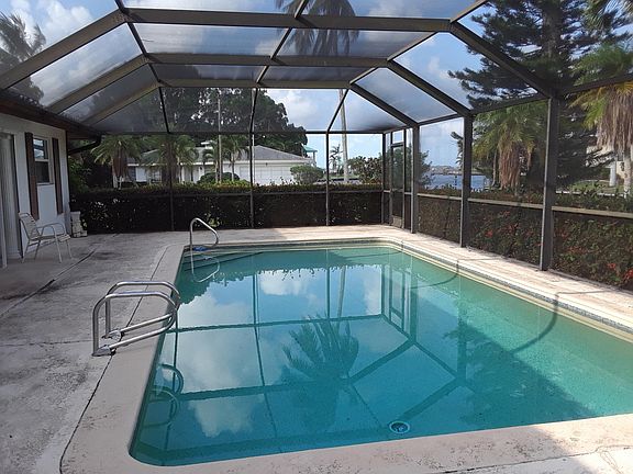 Location, Location...Sailboat access located at the mouth of the canal to the River in the Yacht Club on a cul-de-sac street. Mature home with two bedrooms, two baths, and an office/den/bonus room! Screened pool and lanai with electric shutters to close off the under truss lanai. Two Car garage with laundry in the garage including a washer and dryer. City water and sewer. Lawn and Pool service are included in the rent!! Nothing to do but relax in the pool and enjoy the waterfront