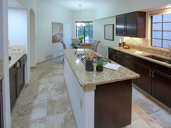 Beautiful home in the exceptional gated community of San Miguel. Soft neutral color palette and modern design is sure to please. Large remodeled kitchen boasts new stainless appliances, granite counters, gas stove and a breakfast bar/island. Gorgeous fireplace. Retreat to the Master bedroom suite and bath with double sinks large separate shower, garden tub. and spacious closets. Low maintenance backyard with covered patio. This location cannot be beat! Community amenities include pool, tennis court, and Clubhouse. Clubhouse has an indoor bar, living room and reception area great for outdoor and indoor entertaining. Near Ft. Lowell Historic District/Park, Rillito River walk, ''The Loop'' Cycling trail, shopping, restaurants, and much more! Come see today!