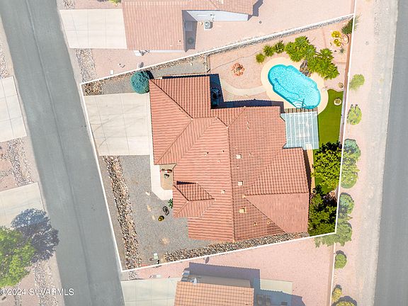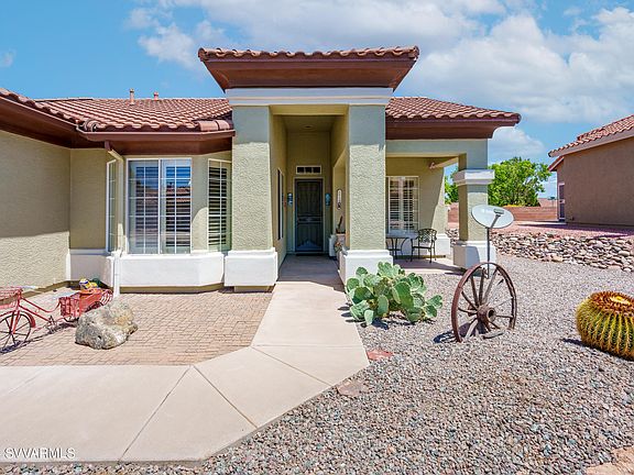Gorgeous Pool Home in a 55+ neighborhood at Verde Santa Fe! Featuring 1,633 Sqft of living space that includes 2 bedrooms plus den, an open great room with beautiful stone surround fireplace & tile flooring throughout. Fantastic kitchen with granite counter tops, stainless steel appliances, breakfast bar, dining area with bay window & built in buffet. Large master suite includes direct access to patio & pool, updated ensuite with double vanity, tile shower & walk in closet. Step out back and enjoy your private oasis that features views of Mingus Mountain & Jerome, pergola covered patio overlooking your private pool & gorgeous waterfall, beautiful artificial turf & low maintenance landscaping. Plus a 3 car garage! Low HOA dues! Ideally located between Scenic Sedona & Historic Cottonwood!