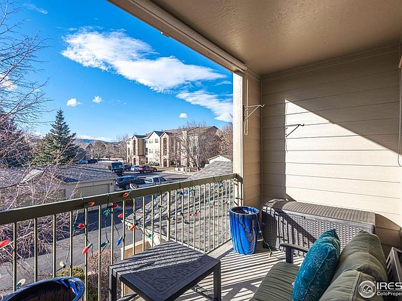 Perfectly located Condo with views of the Mountains. Pride in homeownership with updates shine through on this condo. Replaced within the past 2 years - water heater, appliances, flooring, countertops, lighting, newly painted, California closet, ceiling fans, balcony shades, garbage disposal and LED lighted bathroom mirror. HOA replaced the roof in 2020. HOA includes water/sewer, internet/cable, pool, snow removal, exterior maintenance and management. Enjoy Colorado living with this private unit that has 2 balconies and an Attached garage. Schedule a showing today for this great unit at Fossil Creek Condos.