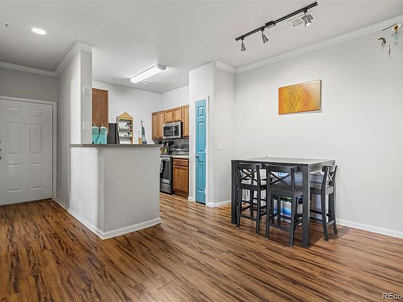 Welcome to your dream condo in the heart of Fossil Creek! This well maintained 2 bed, 2 bath showcases an inviting open concept perfect for entertaining and every day living. This unit features sleek plank flooring throughout and is adorned with updated light fixtures, including stylish track lighting to brighten up the dining space! The kitchen features updated appliances and refinished cabinets and drawers. The primary bedroom features a walk-in closet and a large soaking tub in the en-suite bath, with dual access. The second bedroom is conveniently located next to a spacious guest half bath and laundry with updated front loading washer and dryer. Just off the living room, you'll enjoy fresh air from the covered walk-out patio. Convenience is key, as this unit includes a private parking space in a detached garage, conveniently located directly across from the unit, and a storage unit right outside the front door. Just steps from the door, you'll find the community garden, swimming pool, spa/hot tub, fitness center, park, and clubhouse complete with a full kitchen for your social gatherings. Fossil Creek is surrounded by breathtaking open space and trails, allowing you to connect with nature right outside your doorstep. Enjoy the convenience of living in Fossil Creek Condominiums with easy access to grocery, shopping, dining, schools, and more. This condo offers not just a home, but a lifestyle filled with comfort, luxury, and the beauty of the Fossil Creek community. Don't miss the opportunity to make this your new home sweet home!