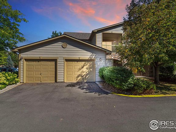 BACK ON THE MARKET! No Fault of Home. MOVE-IN READY! EASY LIVING CONDO WITH RARE ATTACHED GARAGE, offers convenience and safety ~ only 44 attached garages in this complex! Enjoy this quiet end unit with no one above you! Nice laminate flooring, spacious living room with higher ceiling has roll-down sunshade & curtains. West balcony off living room also has 2 roll-down sunshades to keep cool on hot days, or enjoy the sun on cooler days & watch beautiful sunsets! Flow into the bright kitchen with lovely counters & backsplash, all Whirlpool appliances stay, electric range has 4 burners and a warming pad. Enjoy the front balcony off the kitchen & eat-in dining area! Tall windows provide great light in the spacious bedroom with big walk-in closet, curtains stay. Enjoy the full bath with deep soaking tub and adjoining laundry room. Per prior listing, in 2018-2019 the former owner remodeled/added water heater, added insulation in attic, replaced garage door, appliances, garbage disposal, flooring, countertops, lighting, newly painted, California closet, LED mirror with color changing lights and heat, ceiling fans, balcony shades. AC serviced & new furnace installed in Oct. '24. HOA replaced the roof in 2020. HOA common amenities include a beautiful clubhouse with fireplace, kitchen, exercise room with equipment. Community gardens available for planting! Per Property Management, complete renovation coming soon with new pool mid-late 2025 (weather permitting), and plan for spa/hot tub to be up & running in mid-November 2024, to be open throughout the year. Also, new project to add one to two electric vehicle (EV) charging stations before it snows. Community is adjacent to two natural areas and trails that lead to Fossil Creek Community Park and miles of the Fort Collins trail system!