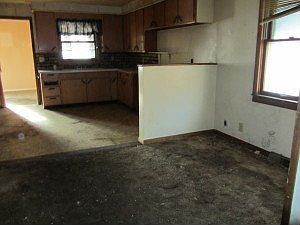 Exterior Features:This house is on a 5227 sq ft lot. Curb appeal is fair. Siding is wood and in fair condition. Roof is shingle type in poor condition. Garage door boarded up, broken windows, fenced back yard, off street parking. No AC unit present.Interior Features:This is a 3 bed 1 bath house with 1368 sq ft. Flooring is carpet and in poor condition. The kitchen has all cabinets, no appliances. Floors and walls throughout the home are in poor condition. Gas fireplace and a basement with furnace. The home has no water heater