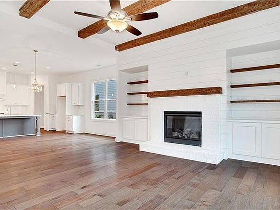 Farmhouse style, Master on Main. So many upgrades, extended master bedroom, stained beams in great room, painted brick fireplace with stained mantel, fireplace built-ins with stained floating shelves, large kitchen island, double SS ovens, upgraded hardwood floors, office/dining room on main, media room, 3 bedrooms, 2 full baths up! We're also adding a screened in back porch with a painted brick fireplace that will be perfect for entertaining.Minutes from Sawnee Mt, 10 minutes from D'Town Cumming, parks, trials, and shopping. The interior pictures are of other floor plans, but will have similar features. 2021-02-04