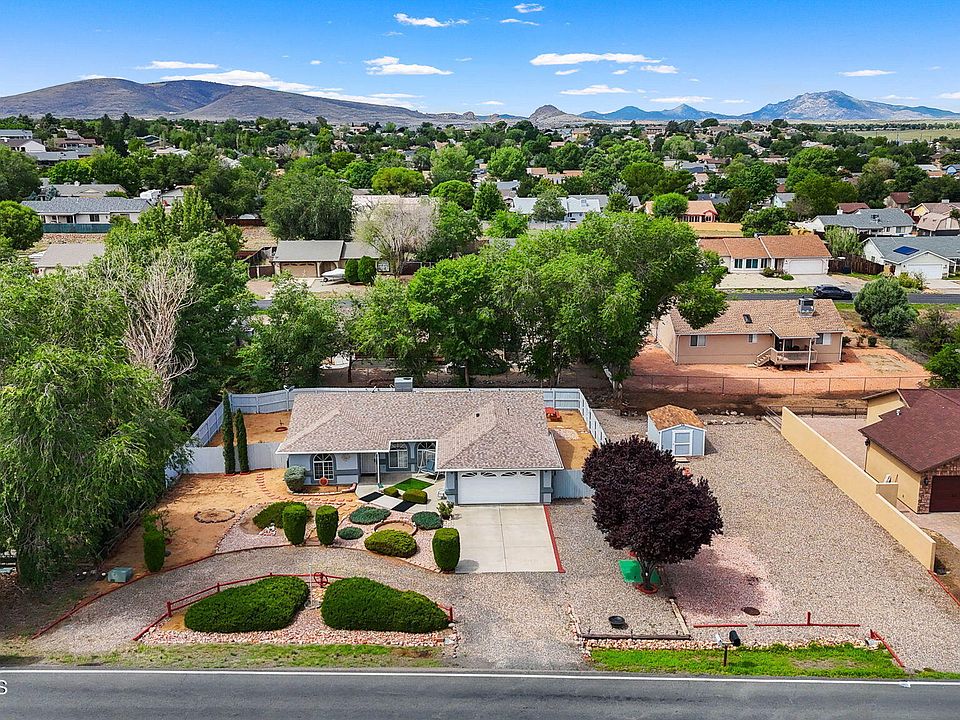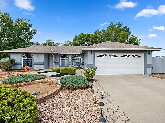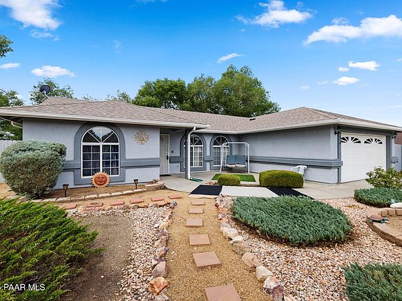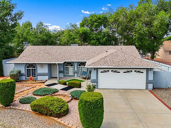 Charming 3 bd 2 ba home with a 2-car garage on an over-sized .33 acre lot with extra parking!! This beautiful home is very well maintained and shows pride of ownership! Split bedroom floor plan. Tile floors in the living room, wood laminate in the master bedroom, and carpet in the two guest bedrooms. Step-in shower and walk-in closet in the master bath & bedroom. Kitchen includes the refrigerator, built-in microwave, gas stove, dishwasher and stainless steel sink. Laundry room includes washer and dryer. Beautiful landscaping with mature trees! The back patio is covered and has an extra uncovered slab extension. Private fenced backyard. Includes an RV gate leading into the backyard and also has additional parking for an RV, boat, or any other toys you want to park. Includes a nice wood-framed shed for extra storage, too! Awesome location! Close to many town amenities and the 89A for a quick commute to Prescott. Don't miss!