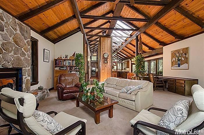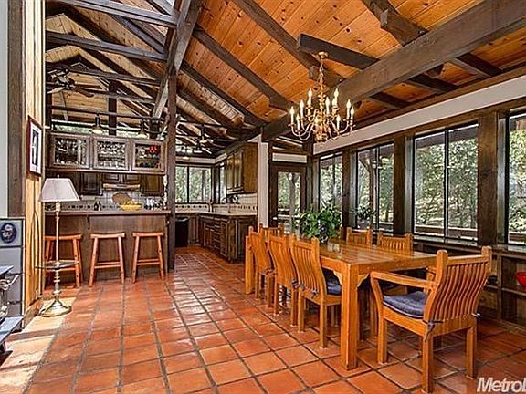 Unique Custom home, soaring open beam cathedral ceilings, skylight & massive windows bring in sunlight & pastoral views. Passive solar heat in winter, shaded in summer. Solar panels provide 80% electrical needs. Large open kitchen w/butcher block island & separate dining bar open to dining room. Wood stove warms entire living area. Wraparound deck overlooking seasonal creek, meadows, orchard. Low-maintenance landscaping. Plus, self-contained 3rd bedroom with full bath and kitchenette. Neighboring 5.44 acres are for sale separately, great space to build a second dwelling or shop.