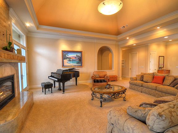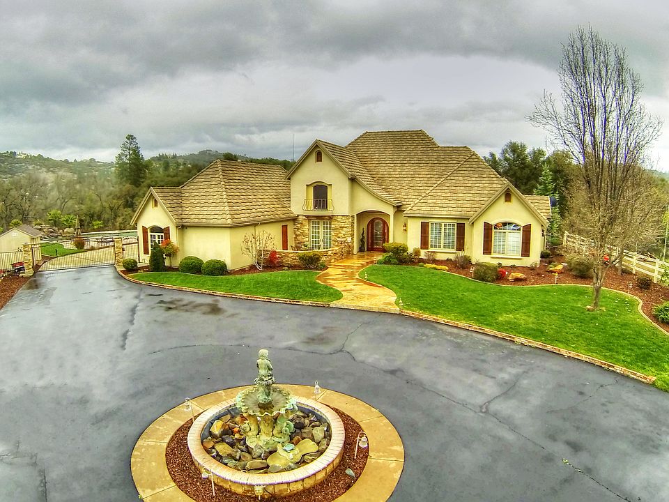 Single Story French Country Estate on 6+ acres in Greenstone Country. Gourmet kitchen, travertine and hardwood flooring. Towering ceilings and walls of windows. Resort like backyard with solar heated pool and waterfalls. Regulation volleyball court. Producing vineyard. Ag water rates. Fenced horse pasture and direct trail access.