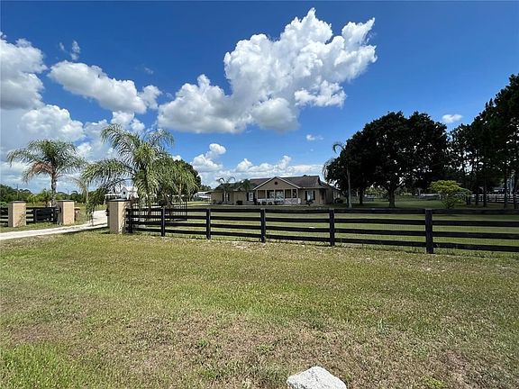 Rare find of 3 acres, in the highly sought after Sunbridge corridor of Saint Cloud! This Ranch style home sits on a corner lot with 3 cleared and fenced acres zoned agriculture. Enjoy country living while being just a few minutes to the heart of Lake Nona! This home provides you 5 bedrooms and 4.5 baths, a wonderful open concept and a unique split layout. Owners suite is spacious with slider access to the porch and the en-suite features a large walk in shower. Your dual vanities offer bowl top sinks and you have a nice walk in closet. You will love the vaulted ceilings and natural light this home provides. The owner has installed new carpeting and new luxury vinyl plank flooring. The home has also been recently painted on the interior. 3 of the secondary rooms provide en-suites and are very large for lounge space. The family room has easy access to the covered back porch which leads the open concept pool. Your kitchen is updated with modern style appliances and has easy access to the dining room and living room which is great for entertaining. This home also provides you a true Mud Room entry, great space to drop your bags and shoes as you come home. Inside mechanical room to keep your important equipment safe. There is a new tankless hot water heater and the owner has installed a new septic drain field. This has been a hot summer... cool off in your salt water pool with sun shelf! The pool features dual bubblers and LED lighting. This property has a small barn that can home a goat or two, some chickens or small farm animals (per county allowance). Need storage space, take delight in the 30x30 detached garage/workshop that also provides carport space. You have ample space for RV parking, boat parking as well. Saint Cloud is one of the top locations in Central Florida to move to. You are less than a 15 minute drive into Lake Nona, Less than 25 minutes to Orlando International Airport, the 528 and the 417. Easy drive to the Florida Turnpike and Hwy 192 and Boggy Creek Rd. Properties like this do not come along every day, take advantage of rates before they go up and enjoy fun in the sun in a great community!