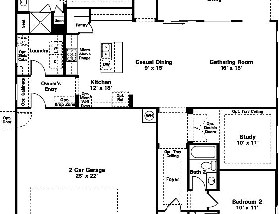 The kitchen is central to the appeal of this floor plan and easily serves large parties, which makes it perfect for entertaining. This home design offers two bedrooms, two baths, and optional enclosed den. With a welcoming front porch and a large patio out back, this home offers the perfect design for indoor and outdoor living.From time to time, there may not be homesites currently available without premiums. Please see a Community Sales Manager for information.