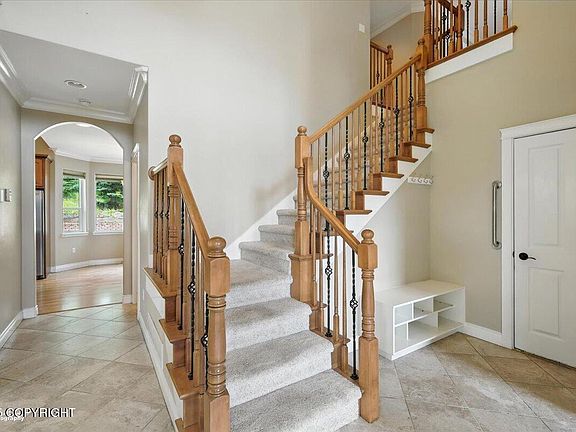 *6 Car Garage!* Tucked into a quiet Wasilla subdivision, this home is on a generous .92-acre lot. The kitchen has granite counter tops, matching stainless steel appliances and plenty of cabinet space, and opens to a large family room. Near the front of the home is a separate formal living room and dining room.10-foot ceilings throughout the main level add a bright, airy feel. All 4 bedrooms have walk-in-closets and are conveniently located upstairs, along with the large laundry room. The main bedroom has coffered ceilings and large windows that look out on the privacy of your backyard. The main bathroom has double vanities, a soaker tub, walk in shower and a walk-in-closet with organizers. Step outside to enjoy the large backyard, deck and oversized shed. In the garage there is more space than one could ever hope for. This large, 6 car garage gives every opportunity for your hobbies, adventures, workshop space and more, and still have room for your car!