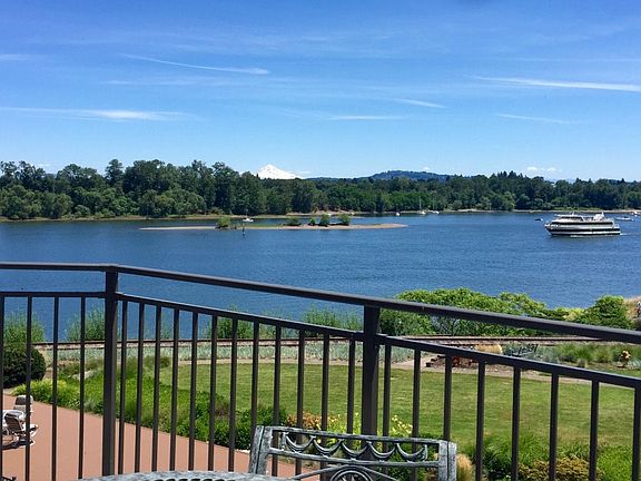Entertain from the large deck as you enjoy the panoramic views of Mt Hood and Willamette River. This top-floor Willamette Shores condo nestled within the Johns Landing neighborhood features 2 bedrooms, 2 full baths, den/office and fireplace. Updated kitchen includes a spacious breakfast nook (or extra family room?). Many recent exterior upgrades to buildings within the Willamette Shores HOA. Light and bright throughout.