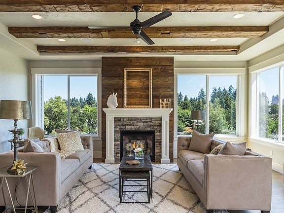 Luxury craftsman with beautiful rustic touches including hand hewn reclaimed wood beams, hand textured drywall, a custom gas fireplace with wood from an authentic corral and custom millwork throughout. This home is a true showpiece and the perfect place to call home. Enjoy the mountain and territorial views from this great room floor plan with 9 ft. ceilings, custom gas fireplace, surround sound & beautiful engineered European oak hardwoods. Gourmet kitchen with slab granite counters, elegant hooded 5 burner gas stove, gorgeous custom cabinets, subway tile, pantry and stainless steel GE appliances. Spacious dining area with a slider to one of two large covered decks lets you enjoy the outdoors all year around. Retreat to the large master suite on the main level with a walk-in closet, double sinks, quartz counters and a subway tile shower. Dual laundry rooms with one on each level, make doing laundry a breeze. Lower level boasts two spacious bedrooms, a full bathroom and a huge media/game room with 10 ft. ceilings, surround sound and slider to a second covered patio. Gorgeous exterior with custom mountain ledge stone and a large terraced yard on a cul-de-sac. Other features include a 3 car garage, central A/C and lots of storage. Desirable south Salem schools and easy I-5 commute.