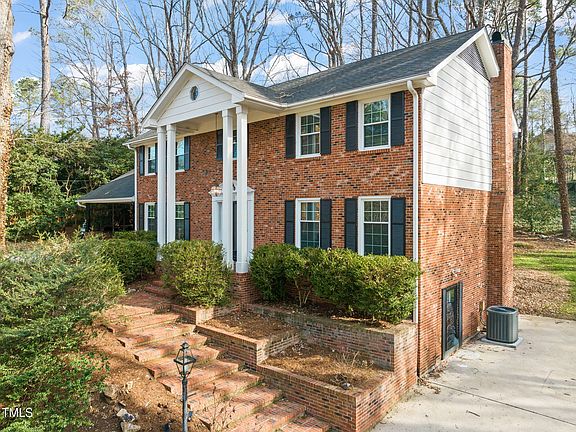 Classic Brookhaven 2 story home with 5 bedrooms and 3 full bathrooms. All Formals. Updated Kitchen includes custom cherry cabinets, stainless steel appliances (new dishwasher), granite countertops, and tile floors. All bathrooms have been updated. First floor guest bedroom and full bath - perfect for multi-generational living. Laundry room is set up for a gas dryer. On the second floor 4 good-size bedrooms. All living areas have hardwood floors. In the walk out basement you will find a newly carpeted rec room and a play area. Gas log fireplace in the family room. This home has storage galore. Windows and roof have been replaced, new HVAC, and new deck. Ample parking with 2 driveways. Garden shed in the back yard. Fresh paint throughout. Easy access to I-440 and I-540. Close to shopping and restaurants at Crabtree. Convenient to all that Midtown has to offer.