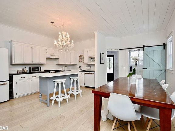 Welcome to Moonstone—a serene countryside community near Highway 400, offering tranquil living just moments away from urban convenience! Picture yourself on the serene front porch, a world away yet a short drive from Barrie, Coldwater, Orillia, and Horseshoe Valley. Enjoy easy access to Mount St. Louis Moonstone and remarkable hiking trails. This beautiful storybook home on over 3/4 acre is fully updated—new roof, covered porch, lighting, European white oak flooring, bathrooms, and a top-notch GE Cafe matte white kitchen set. The house boasts 2 newer gas fireplaces, a 6-burner gas range, dishwasher, LG washer, dryer, hot tub, on-demand hot water, water softener, water treatment, ductless A/C, and has potential in-law suite. Plus, Nordik black-framed windows, newer entry doors with Emtek hardware. It's a must-see—a place where falling in love is effortless!