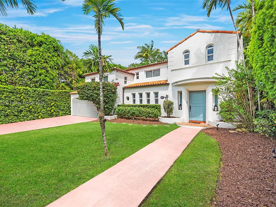 Modern Mediterranean Beauty! This two-story family home is completely gated with impeccable curb appeal. Inside find stunning architectural details coupled with modern taste, gorgeous wood beams and arches, a fireplace, chic light fixtures, sun-filled living areas, separate guest wing, and an open spacious layout ideal for families. Enjoy a completely remodeled eat-in gas kitchen w/island, top-of-the-line appliances, completely renovated bathrooms, & recessed lighting throughout. Outside find a private backyard with lush manicured hedge, covered seating areas, summer kitchen, Al Fresco dining, and a dazzling pool. 2-car garage w/electric charging, impact doors & windows, plantation shutters, office, playroom, media room, formal living, & powder room which can be converted into a full bath.