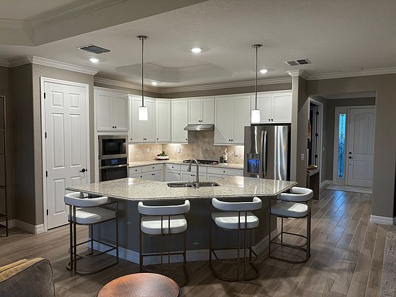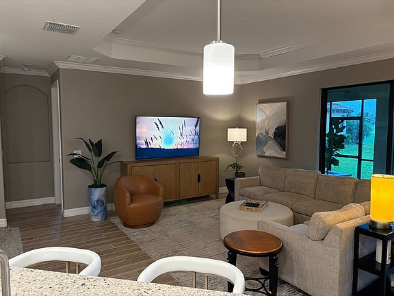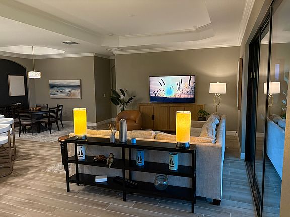 Lakewood National Golf Club Home. 2 bed / den (3rd bed) / 2.5 baths. Fully Furnished for short or long term rentals. The home has a 2 car garage and an outdoor kitchen on the covered patio. Large backyard overlooks hole #7 (par 3) on the Piper Course. A murphy bed in the den easily converts this room into a 3rd bedroom. Available now thru January 31 for 30 day minimum rentals. We offer off-season and multi-month discounts. The listed rent is the MINIMUM for off-season rentals. Off-season is June-October. This is a beautiful resort community on a very friendly street. Minimum 30 day rental. All HOA Transfer Fees paid by tenant. All utilities paid for by Landlord.
