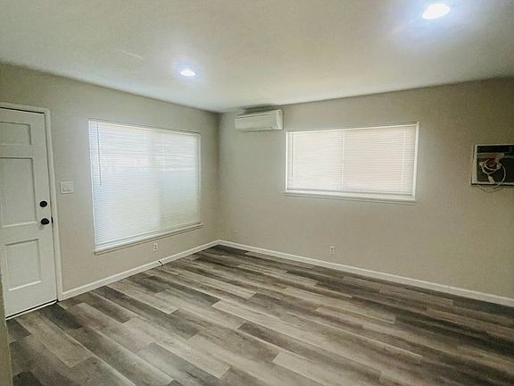 Renovated 2 bedrooms, 1 bathroom duplex on corner lot. Home features beautiful wood laminate flooring throughout, dual pane windows and recessed lighting. Fully updated kitchen with stone counters, modern cabinets, double sink, all stainless steel appliances including electric cooktop stove, dishwasher, microwave and refrigerator. Spacious bedrooms with ceiling fans. Bathroom has been completely renovated with new vanity, tile and shower over tub. New mini split system for Heat and Air which allows temperature control in each room. Low maintenance yard is just the right size for enjoying the outdoors, landscaping is a resident responsibility. Washer/dryer hook ups located in 1 car garage (manual open). Home is conveniently located close to local schools, shopping and transportation.
